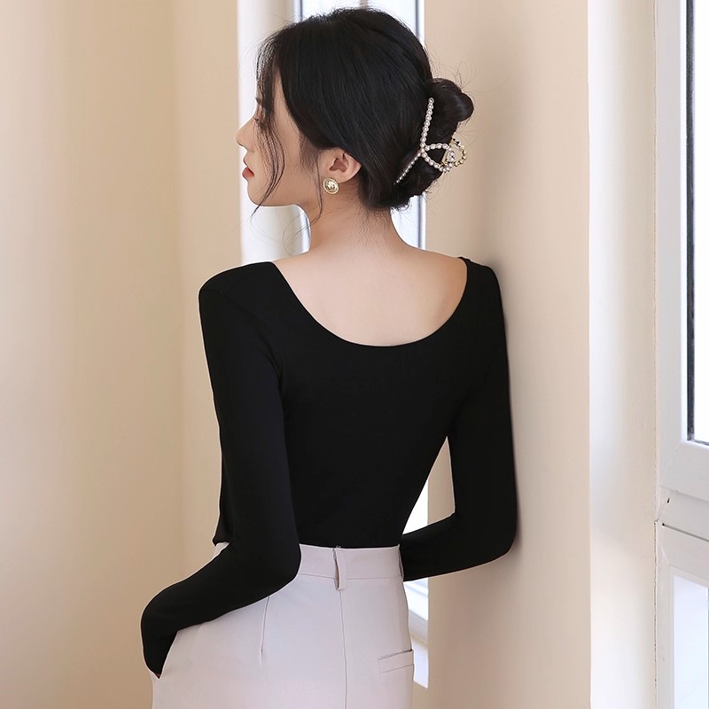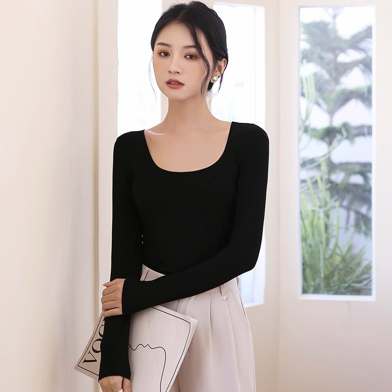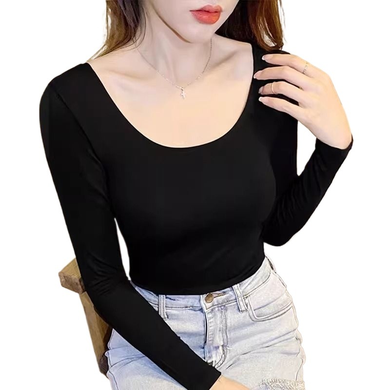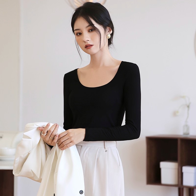薄款 双U领打底衫 t恤低领修身 内搭黑色德绒长袖 上衣 女秋冬2025新款