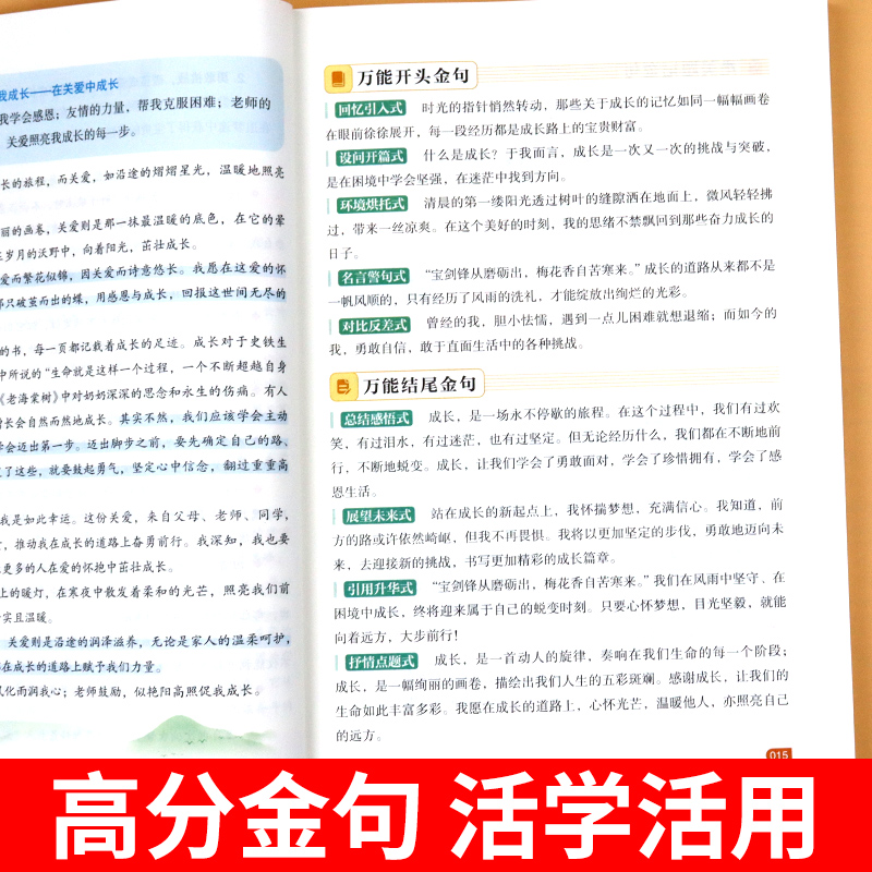 初中生作文金句高分素材一本全 中学生专用写作技巧优秀作文书A 初中语文高分范文精选素材七年级初一中考满分作文2025年配套人教版