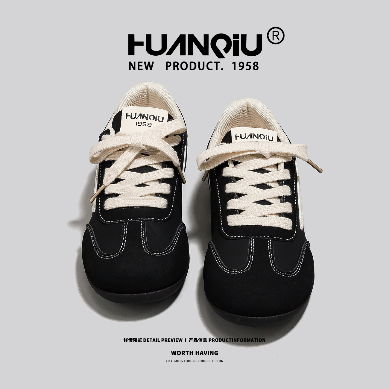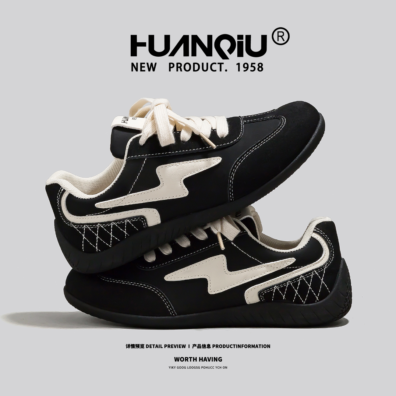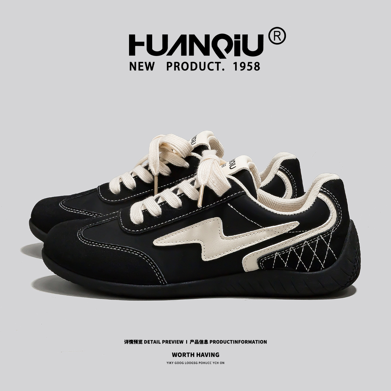 闪电黑色德训鞋 轻便休闲板鞋 女2025秋季 百搭小黑鞋 子 新款 环球爆款