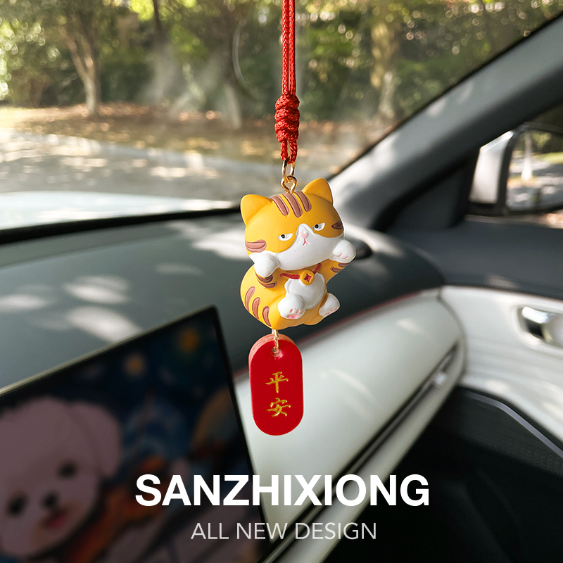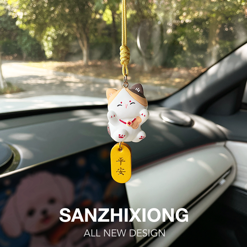 可爱猫咪汽车挂件平安挂牌车内后视镜装 饰吊坠创意车载挂饰品车挂