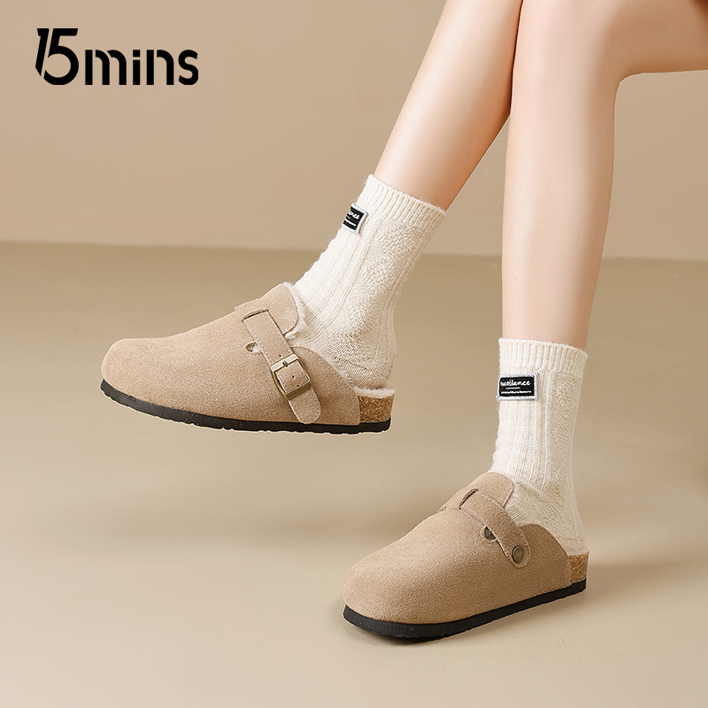 复古休闲博肯鞋 岛外DAOWAI勃肯鞋 秋冬加绒羊毛厚底4cm包头软木鞋