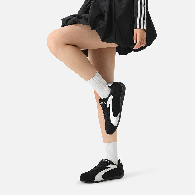 2025夏季 男女同款 新款 内增高鞋 小众设计赛车鞋 子板鞋 银黑色德训鞋