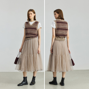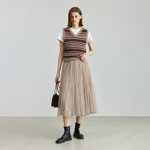 含羊毛老钱风V领针织衫 女装 LILY2025秋新款 背心马甲 商场同款