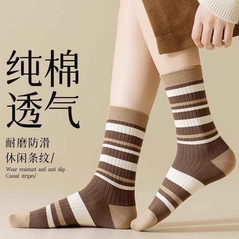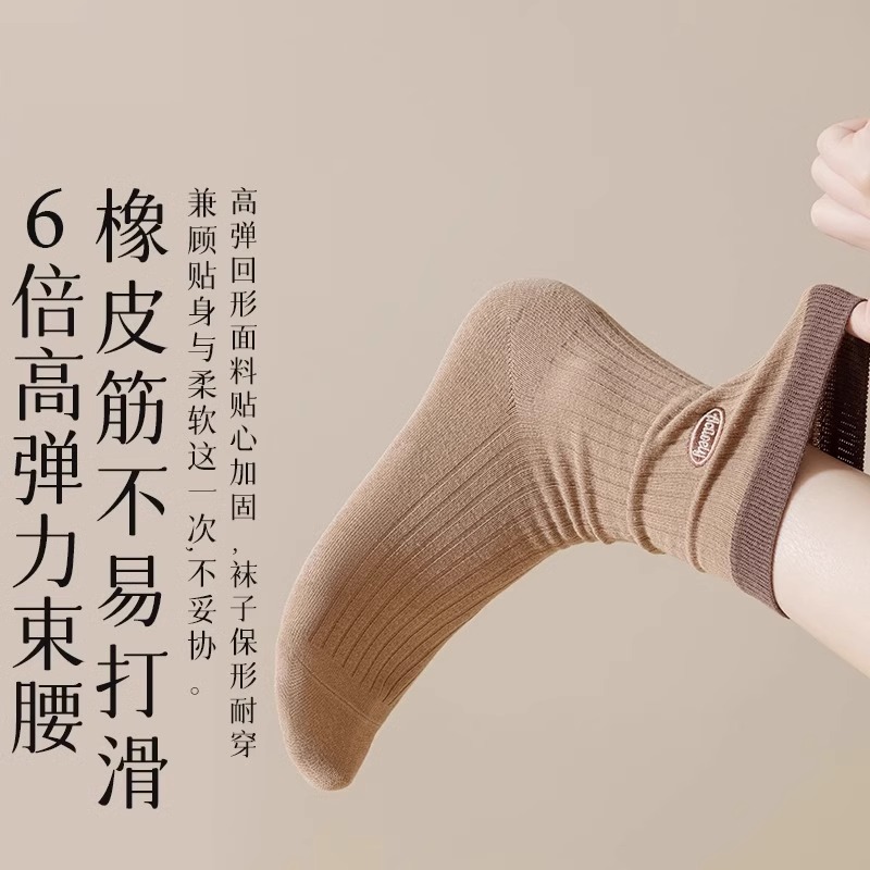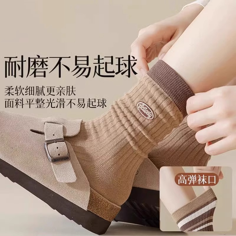 纯棉中筒棕咖色堆堆袜配勃肯鞋 2025新款 长袜 秋冬季 木耳边袜子女款