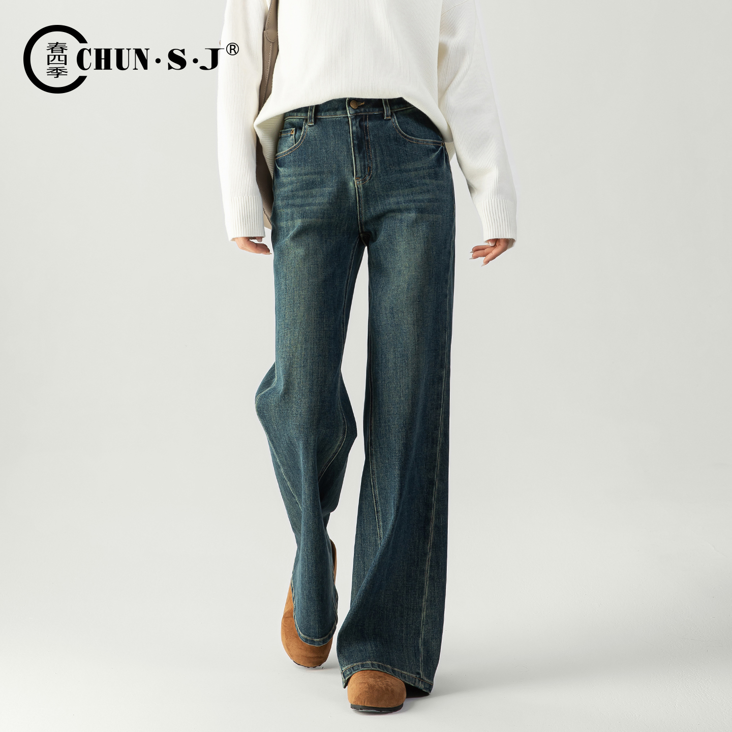 新款 ONLY2025秋季 高腰复古宽松显瘦V字腰头直筒牛仔裤 腰精裤
