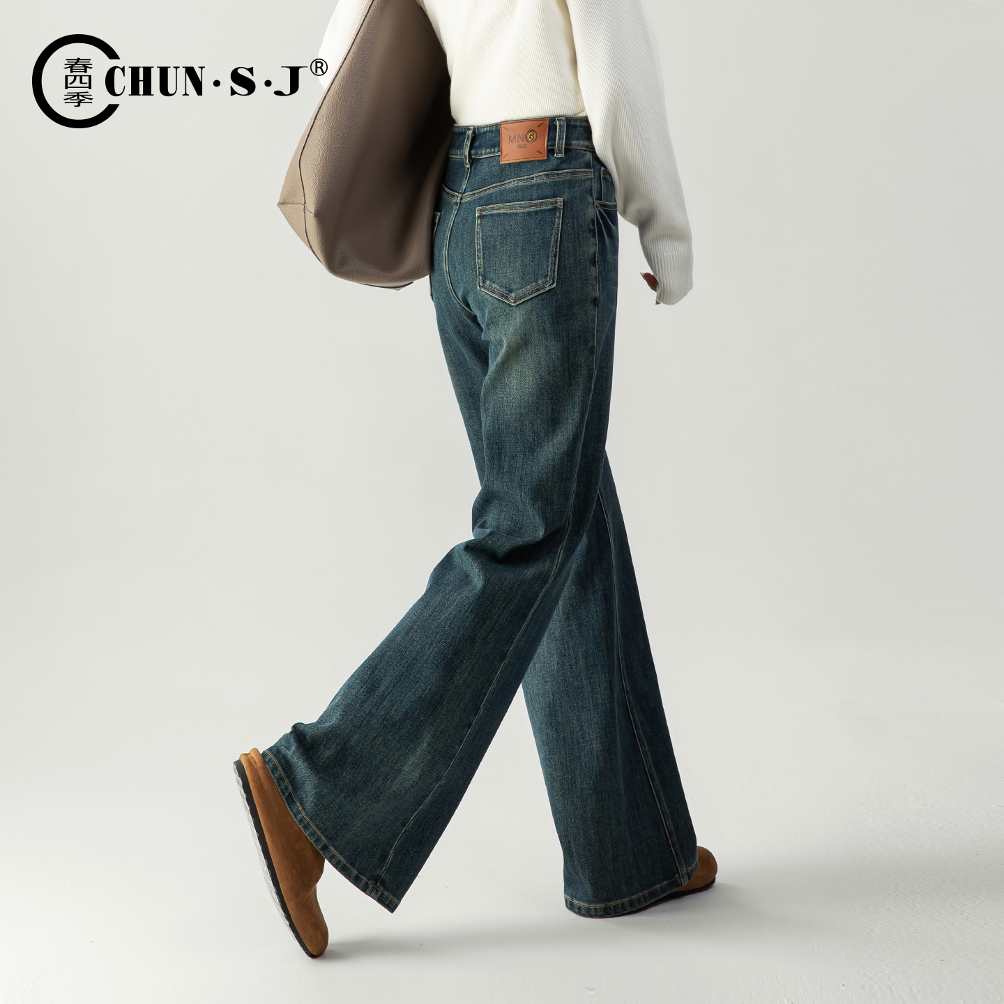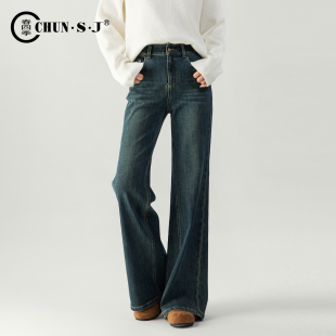 白色拖地裤 2025新款 蓝色流行高腰 女冬抓毛莱赛尔阔腿裤 森马牛仔裤