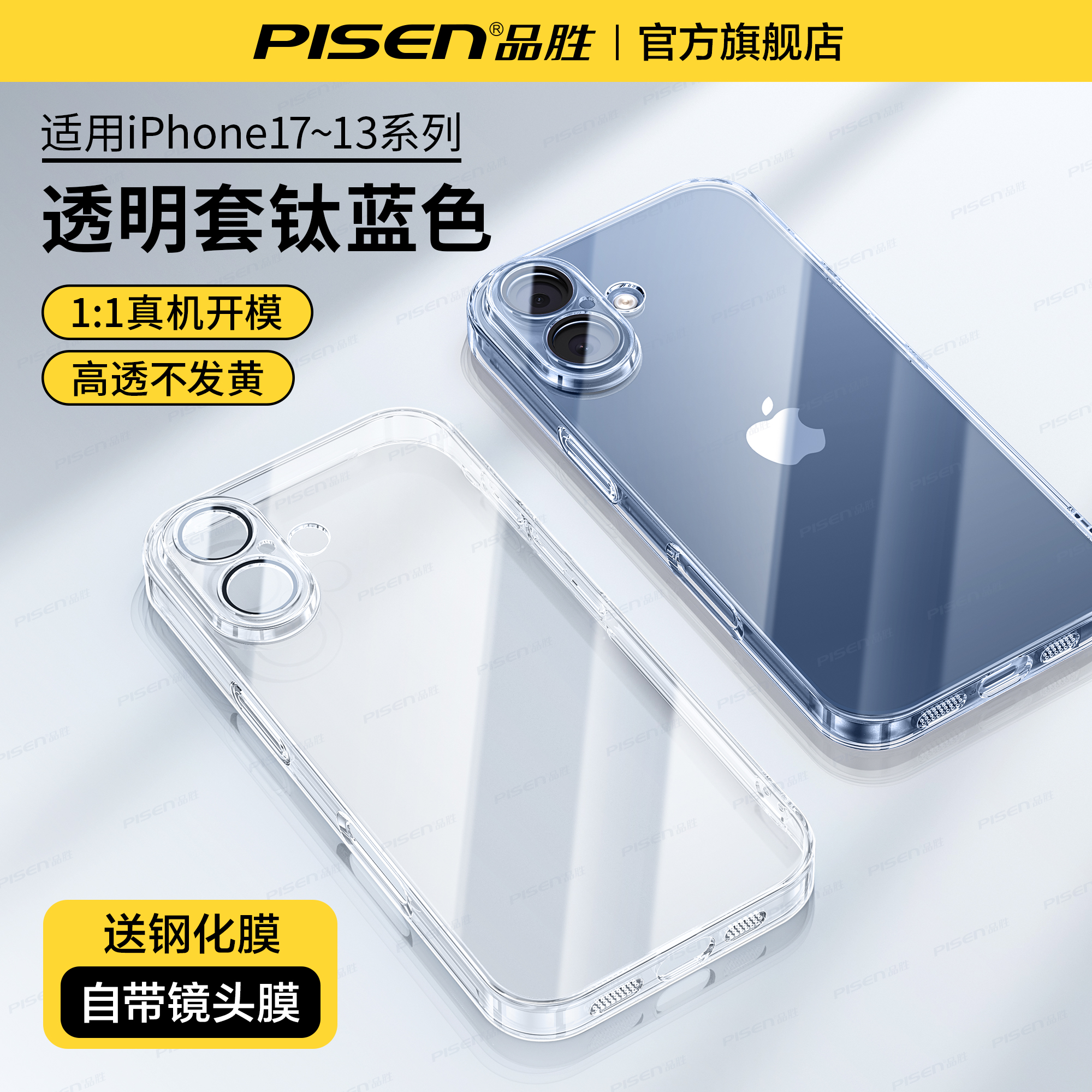 品胜适用苹果17promax手机壳新款 iphone17保护套16pro超薄透明13自带镜头膜防摔ip15情侣14高级感12磁吸plus