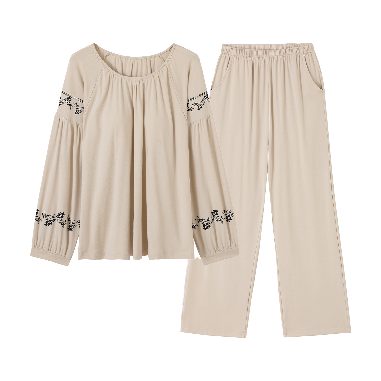 全棉休闲家居服套装 带胸垫长袖 秋春2025新款 都市丽人纯棉睡衣女款