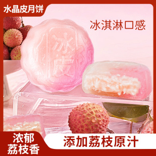 荔枝味冰皮月饼礼盒装 榴莲味水晶皮水果味月饼中秋送礼品 2025新款