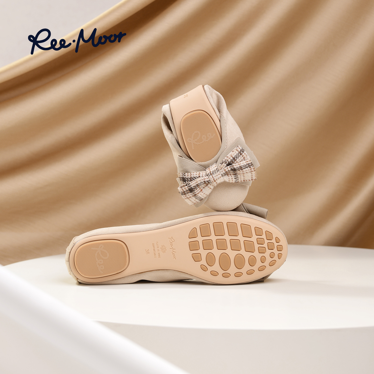 蛋卷鞋 REEMOOR睿慕2025秋季 蝴蝶结浅口女休闲通勤单鞋 法式 新款