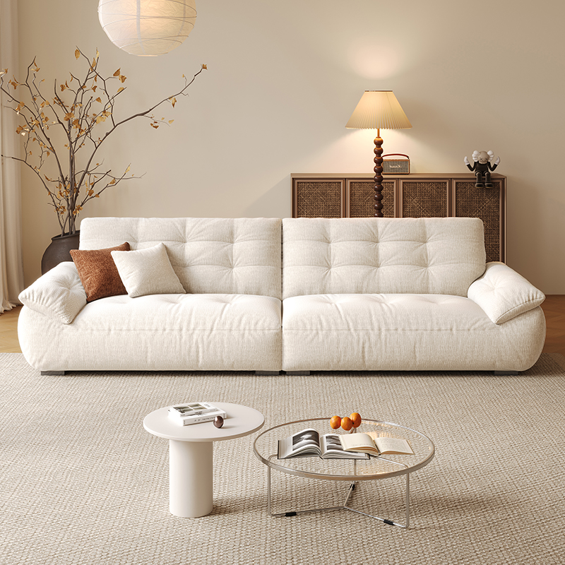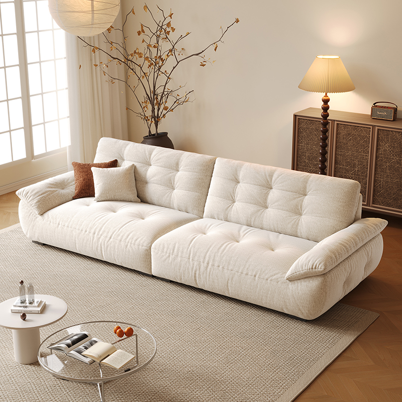 奶油风布艺沙发客厅2025年新款 直排可拆洗棉麻云朵雪尼尔绒布沙发