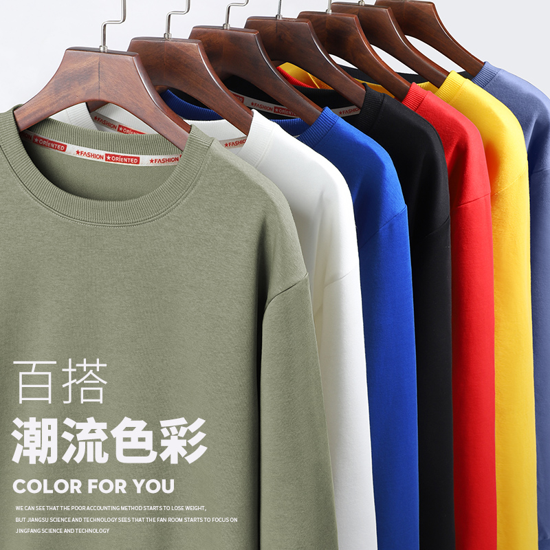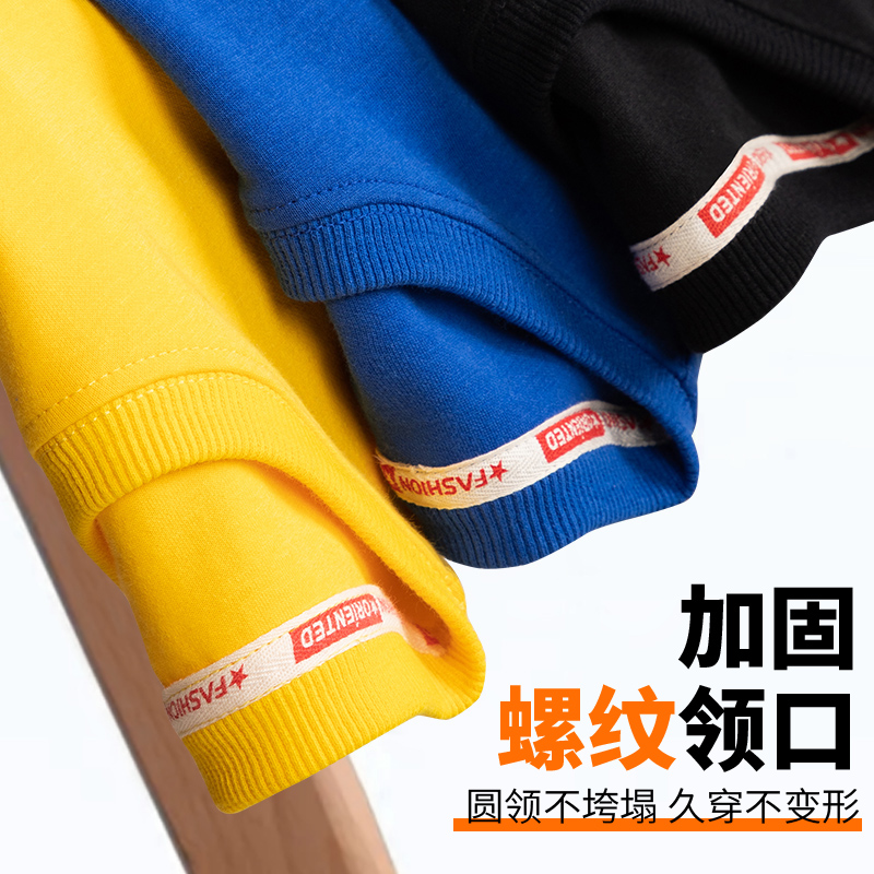 青少年学生宽松圆领打底 t恤春秋薄款 卫衣男士 上衣棉重磅厚实长袖