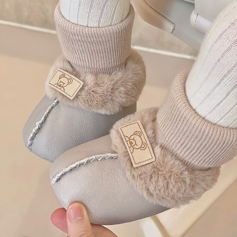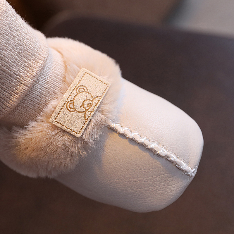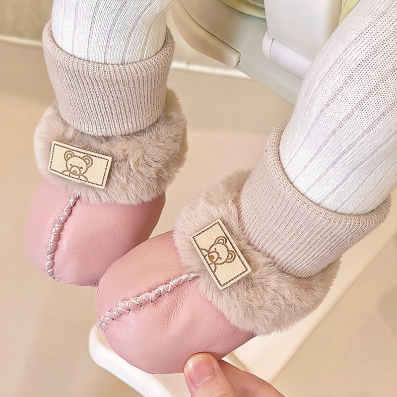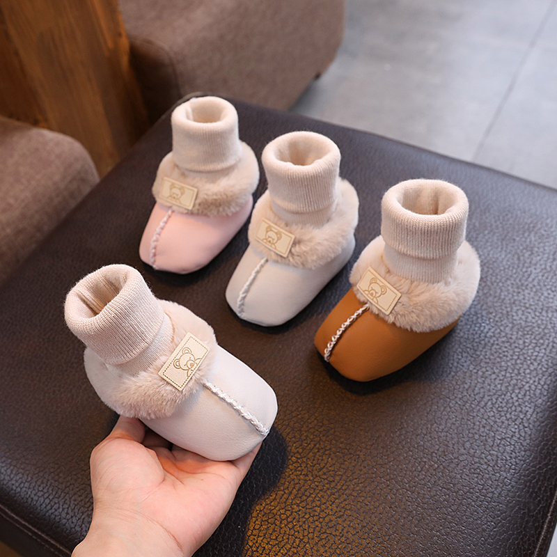 1岁男女宝宝棉鞋 秋冬季 袜加绒软底步前鞋 新生儿婴儿皮毛一体鞋