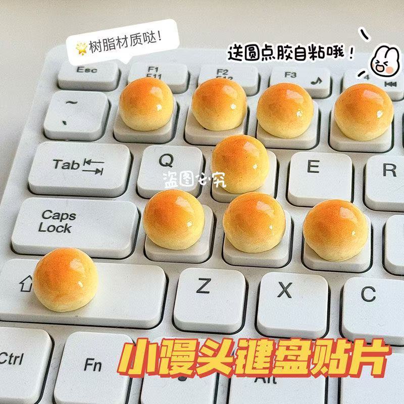 DIY美甲键帽3D立体办公游戏适用卡通小馒头打字键帽无痕粘贴背胶