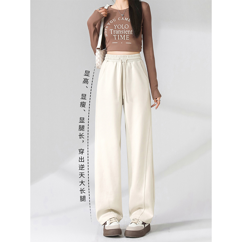 高级宽松bf慵懒垂感直筒加绒休闲阔腿裤 2025新款 子女春秋季 糯米裤