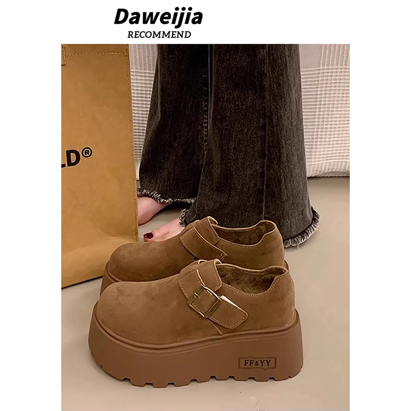 复古百搭加绒厚底增高乐福棉鞋 秋冬季 小个子松糕 女2025新款 勃肯鞋
