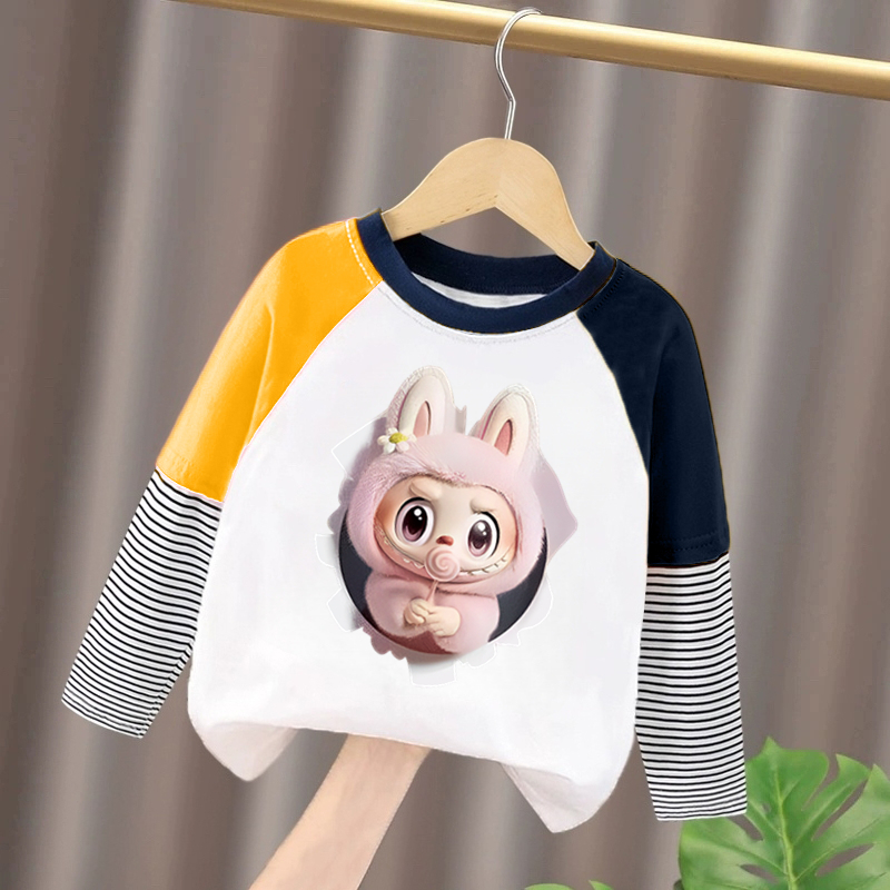 女孩宝宝洋气纯棉打底衫 秋装 秋上衣 假两件拉布布新款 女童t恤长袖