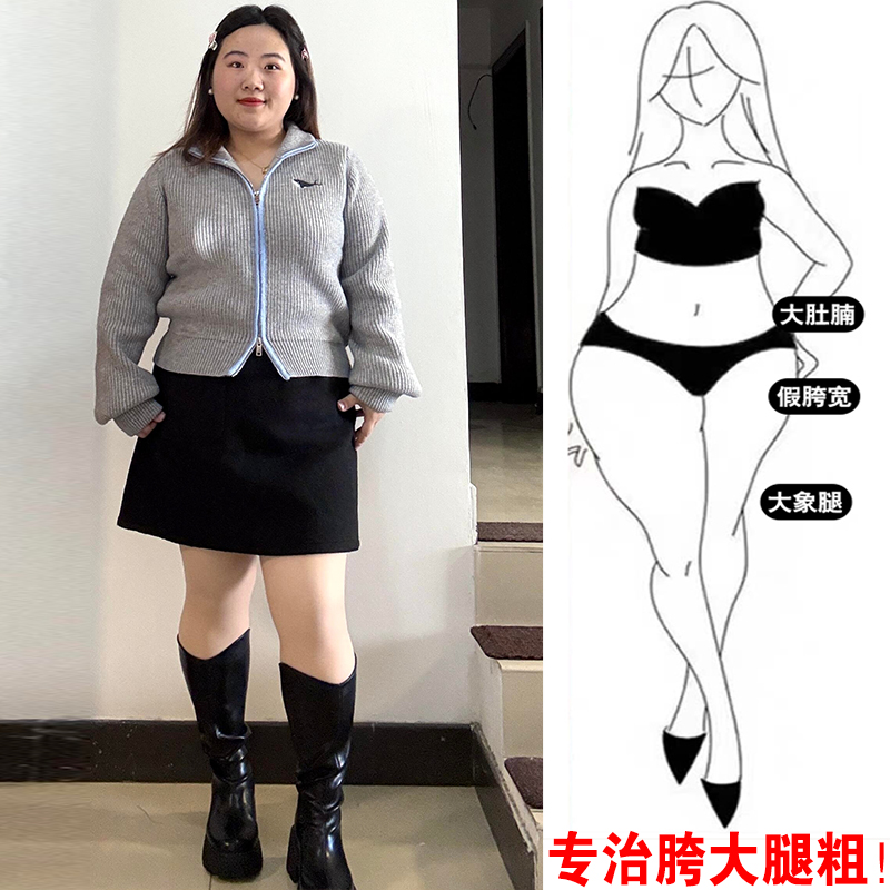 胖m大码 黑色毛呢短裙女秋冬梨型身材高腰显瘦防走光a字包臀半身裙