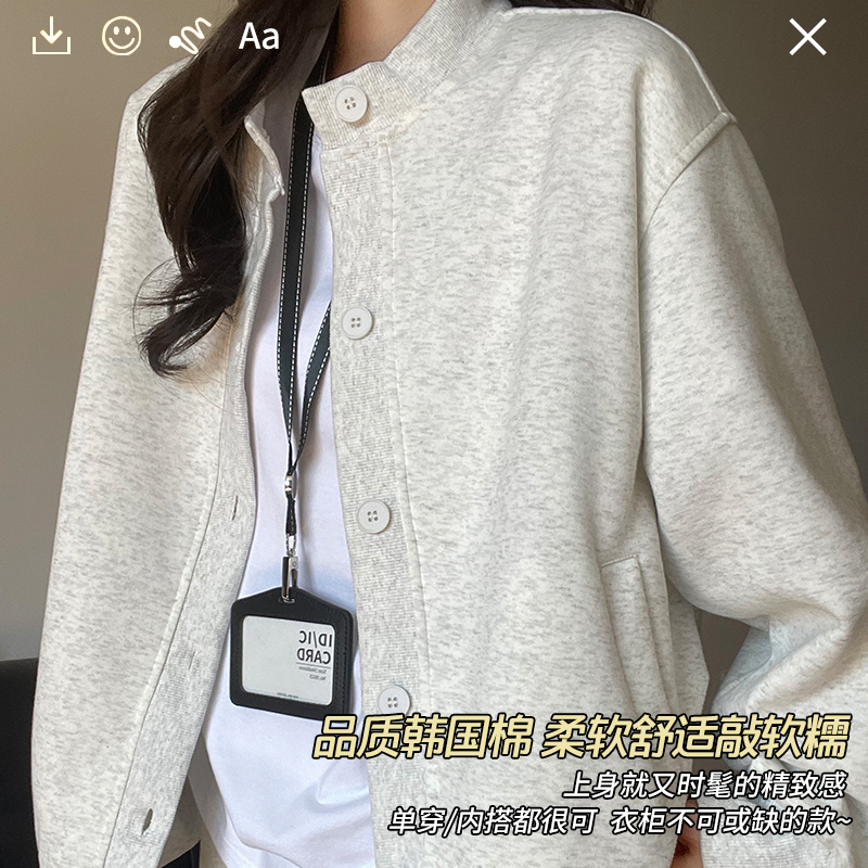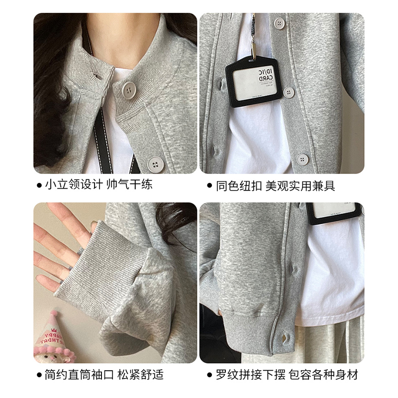 高级感慵懒风oversize上衣 2025新款 美式 复古灰色棒球服外套女秋季