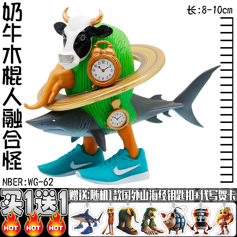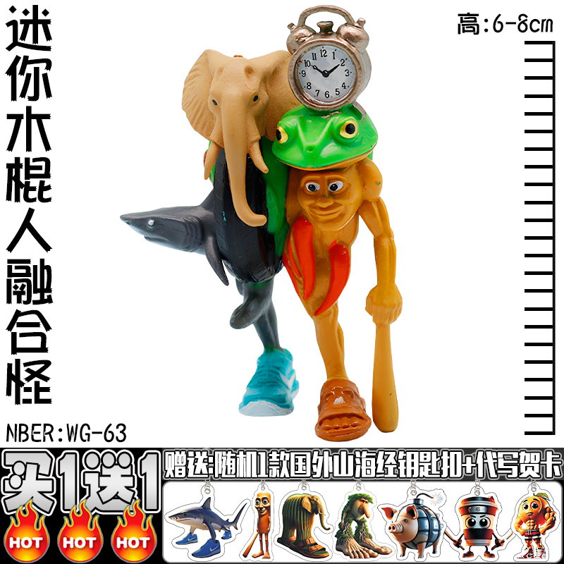 新款 山海经融合怪AI抽象手办原始人木棍人五怪模型儿童玩具 夜光版