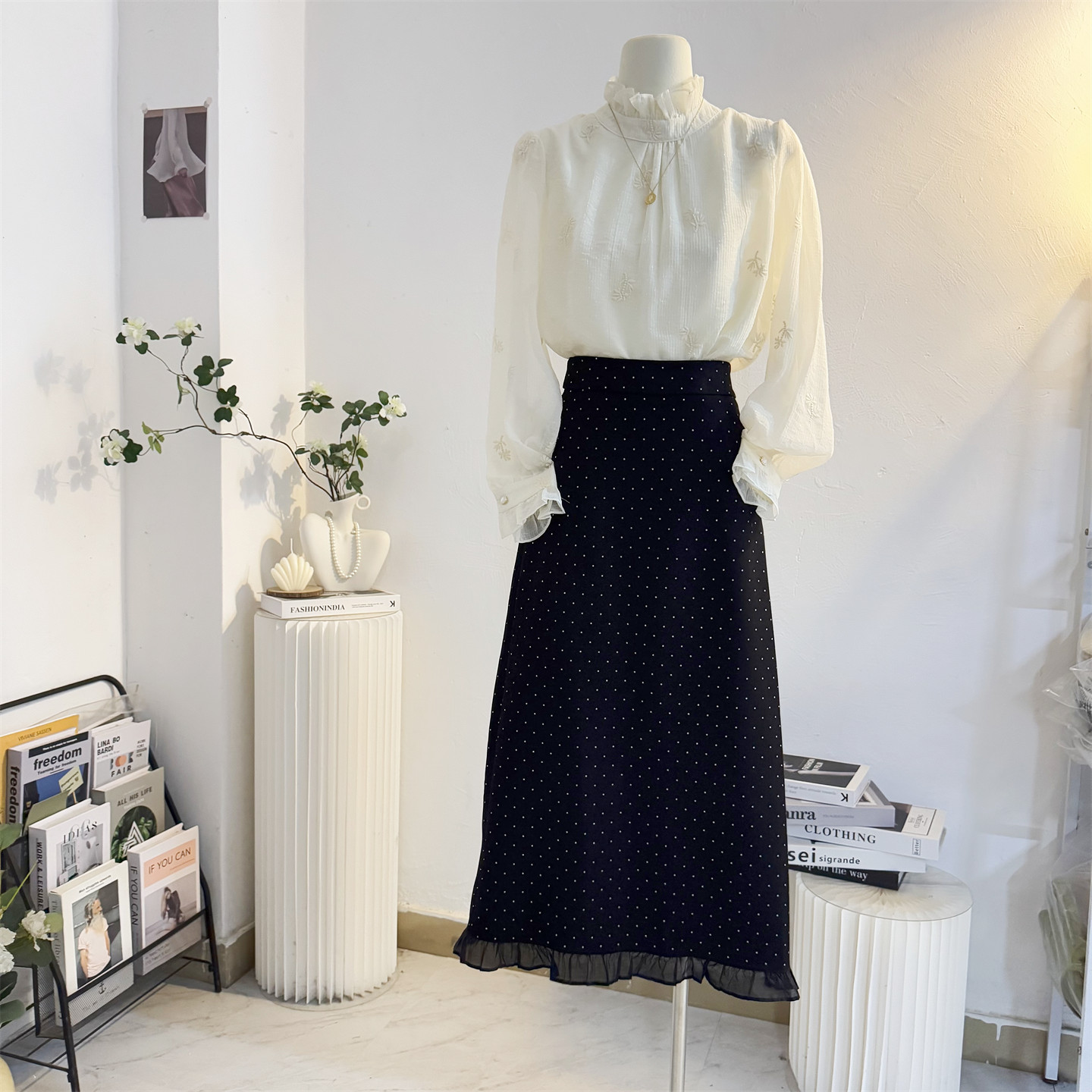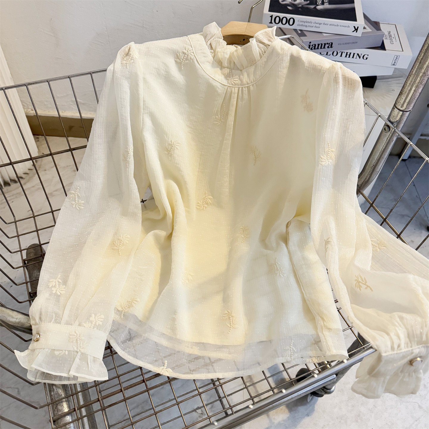 洋气设计感木耳拼接V领长袖 极简纯色衬衫 时尚 新款 上衣潮 2025秋季