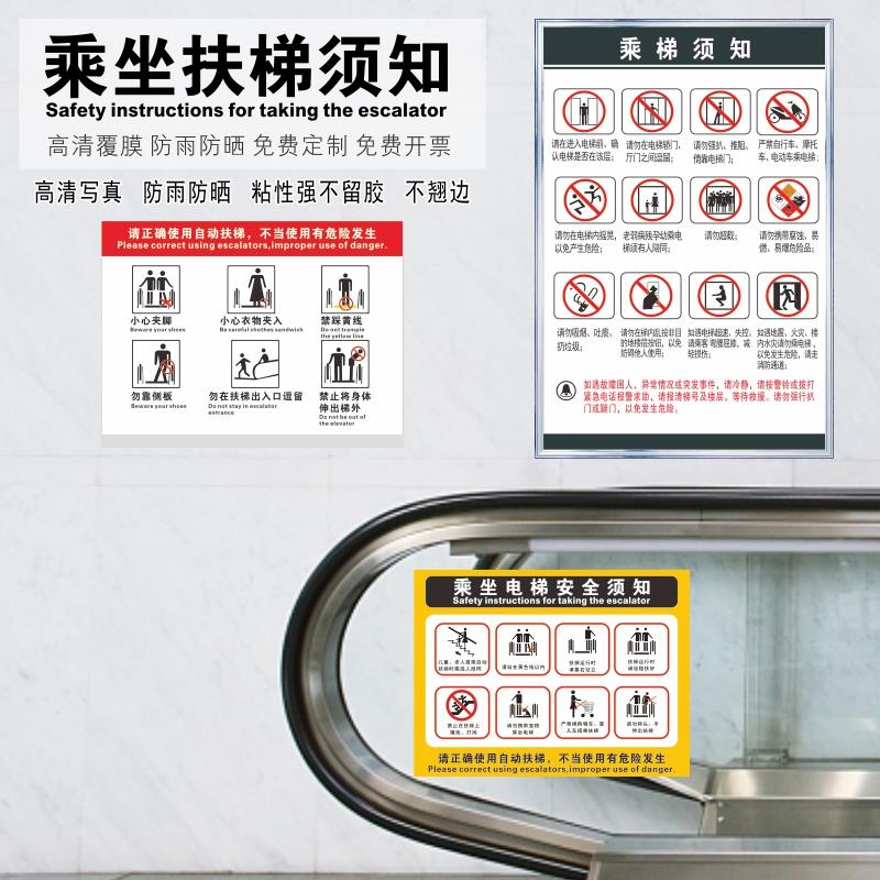 扶梯安全警示标识乘电梯注意事项安全须知需知商场超市地铁站手扶梯安全标识自动扶梯扶手电梯特种设备警示牌