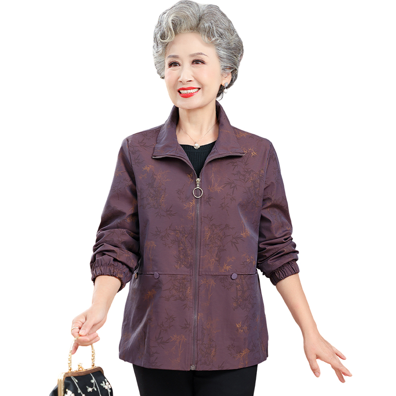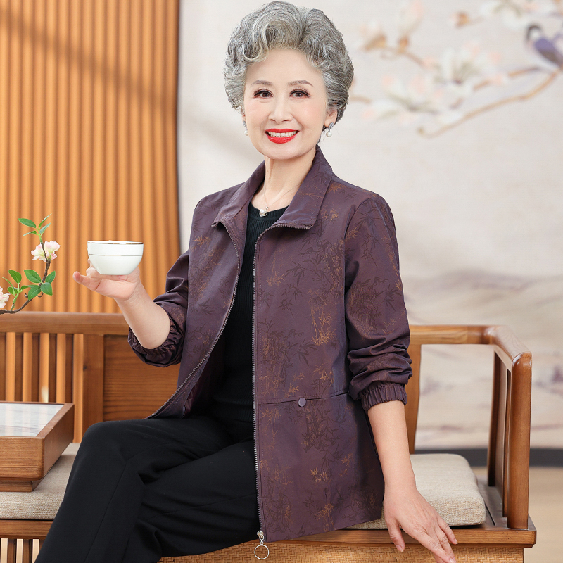 翻领夹克外套老人时尚 奶奶秋装 薄款 春秋季 上衣服 风衣中老年人女装