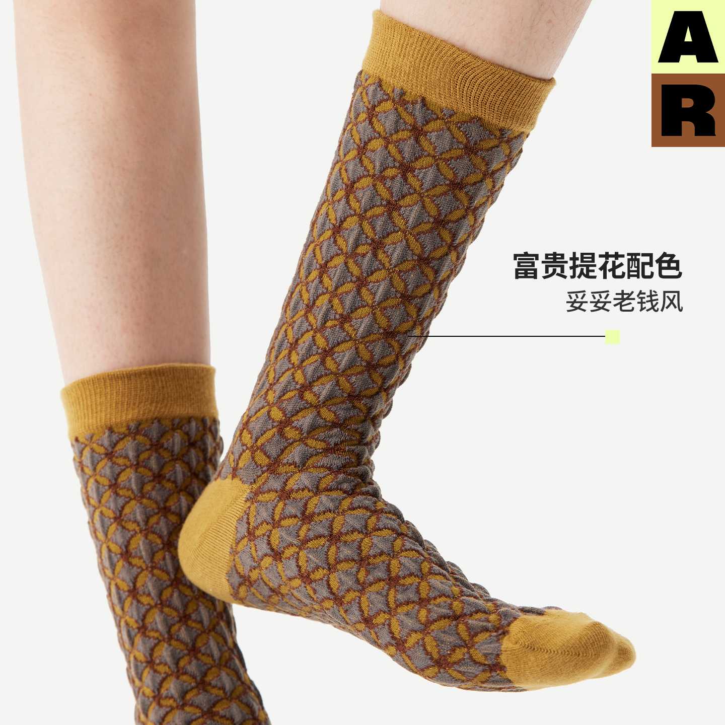 袜子女中筒袜秋冬ins日韩2025新款 拼色美拉德咖色复古色系女长袜