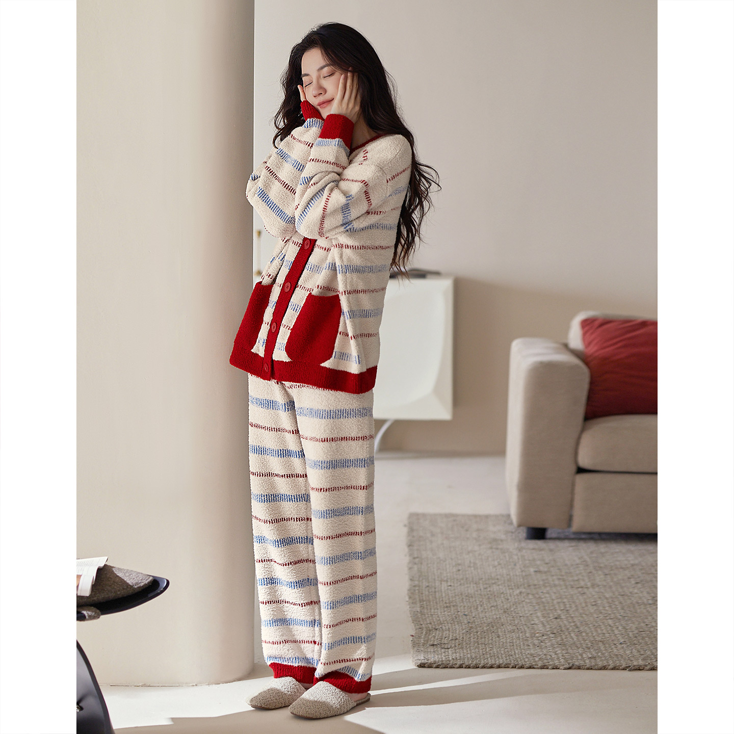 海岛绒可外穿家居服 简约薄款 睡衣女秋冬季 保暖珊瑚绒女士睡衣套装