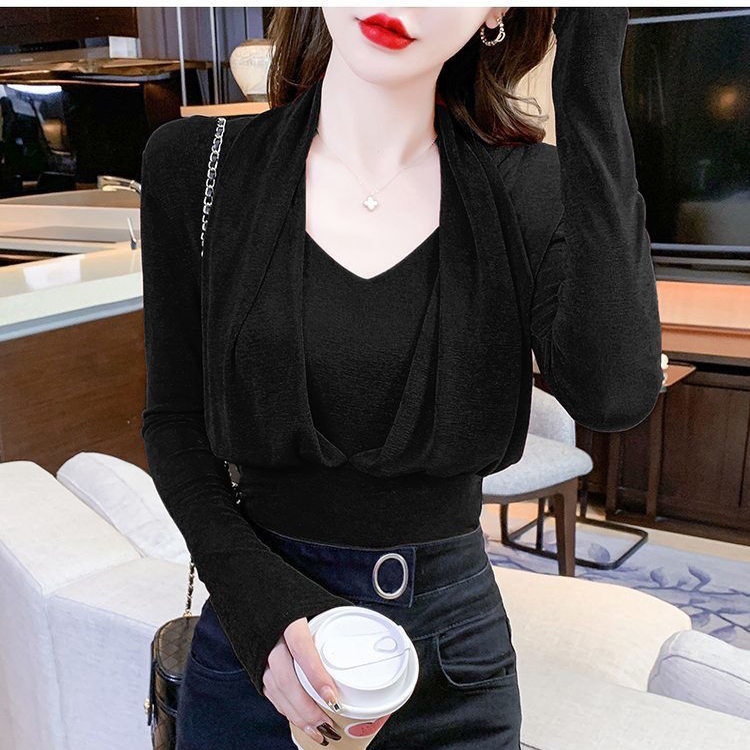 衬衫 秋季 简约百搭挂脖长袖 针织植绒上衣女法式 轻熟知性气质修身