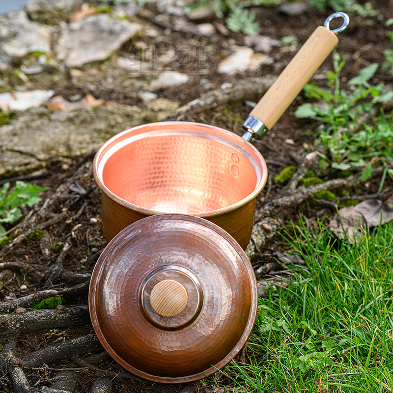 侧把汤桶紫铜手工加厚木把奶锅带盖汤锅燃气炖锅电磁炉商用小铜锅
