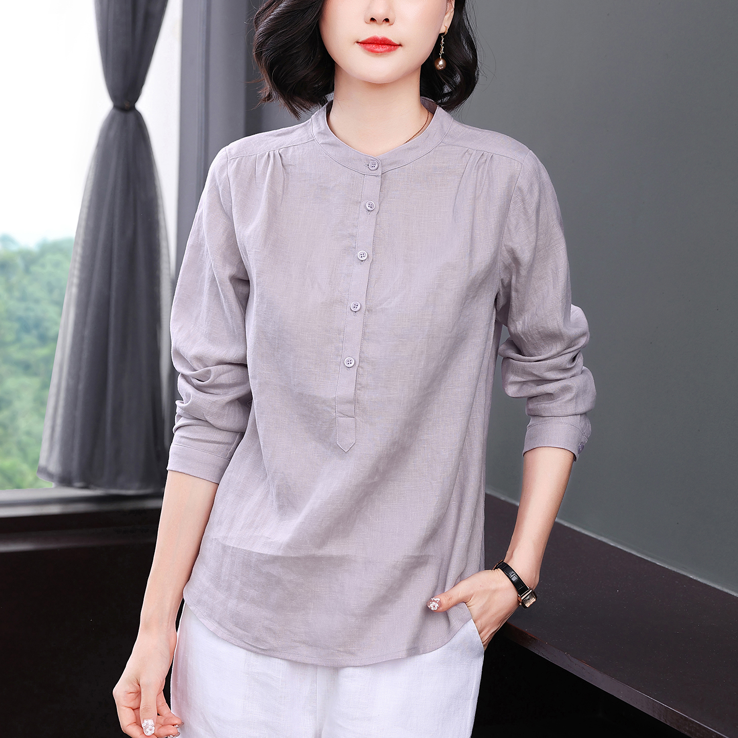 亚麻衬衫 高级感轻奢减龄洋气休闲早秋上衣长袖 爆款 衬衣女2025新款