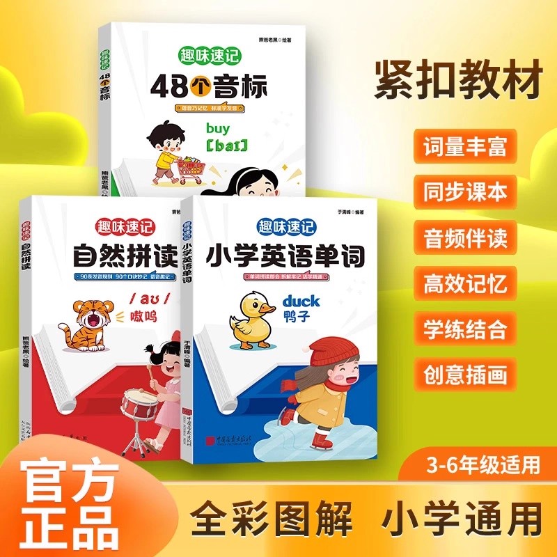 零基础自然拼读速记巧记小学生英语单词书谐音自然拼读巧记忆标准学发音英语入门自学零基础书y 趣味速记48个音标正版 抖音同款