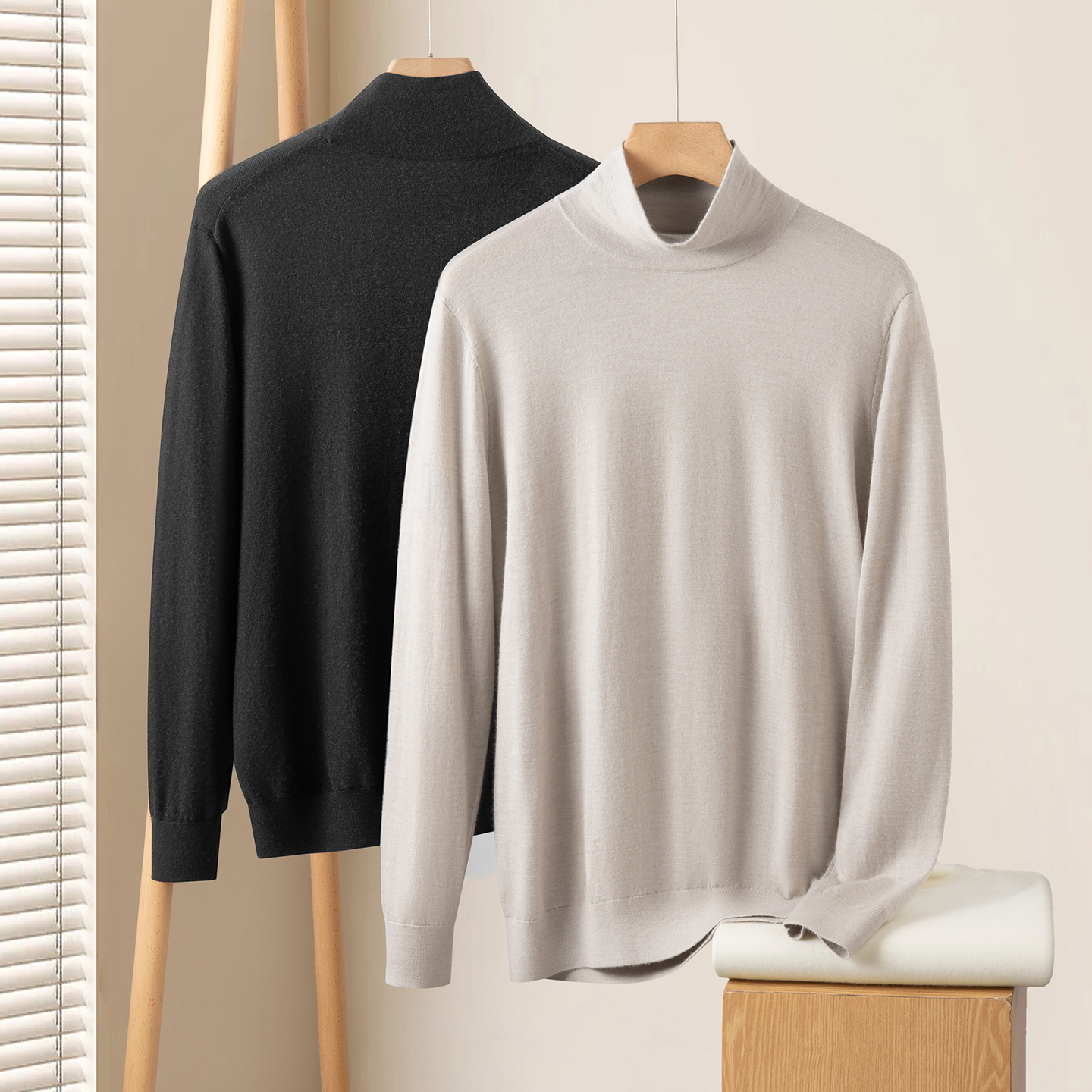 高端毛衣 针织打底套头保暖薄款 半高领精纺100%纯山羊绒衫 男秋冬季