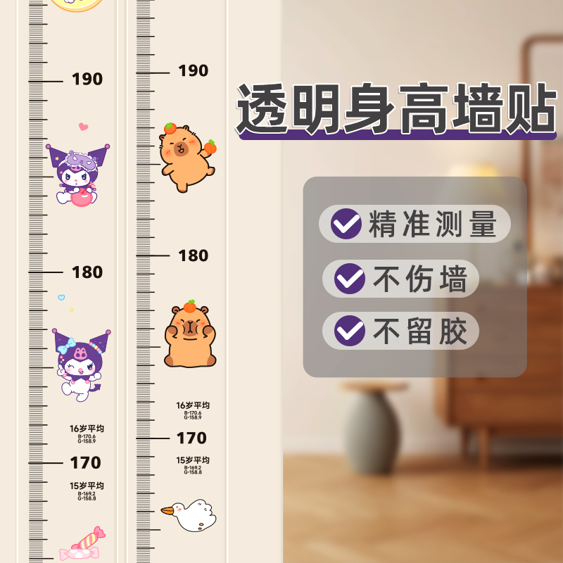 可移除不伤墙身高测量墙贴儿童透明身高尺宝宝量身高神器精准测量