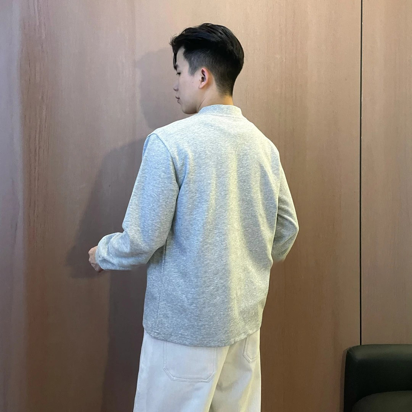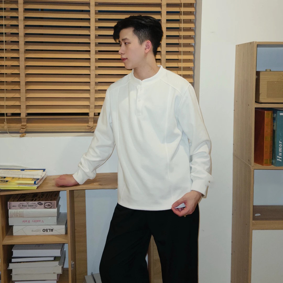 立领卫衣痞帅高级感内搭打底上衣 早秋穿搭美式 亨利领长袖 T恤男士