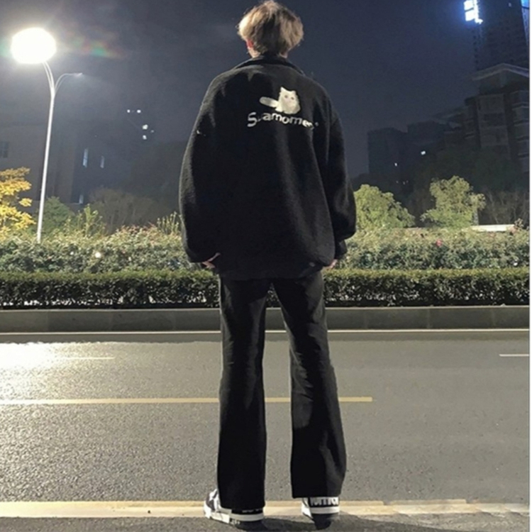 加绒街舞穿搭褶皱宽松休闲长裤 女秋冬季 子 灰色运动卫裤 自然涩美式