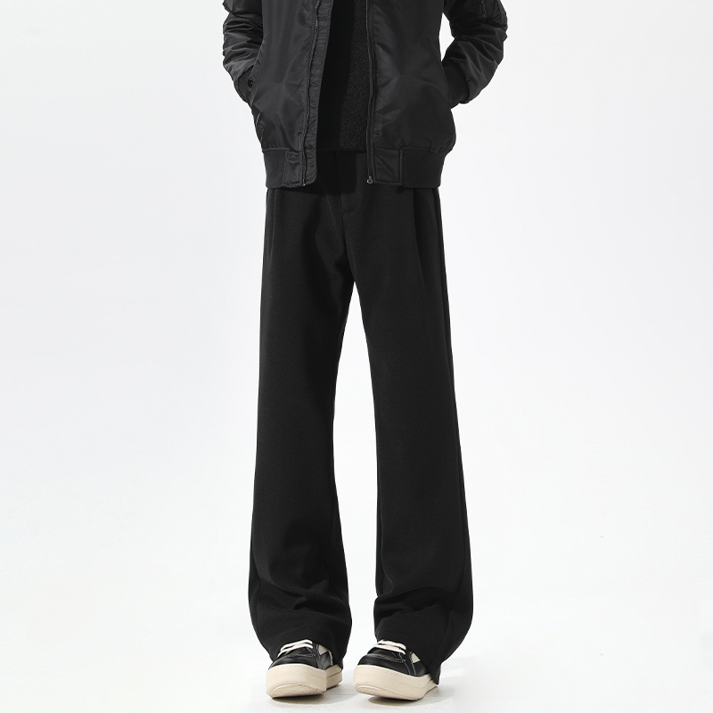 女春秋新款 休闲直筒慵懒松弛感裤 高腰垂感窄版 裤 子 西装 黑色阔腿裤