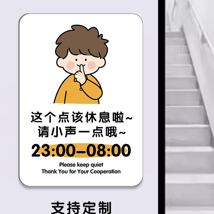 夜深人静请勿大声喧哗提示牌请保持安静告示牌亚克力公共场所温馨提示牌轻声细语请勿影响他人提醒牌墙贴定制