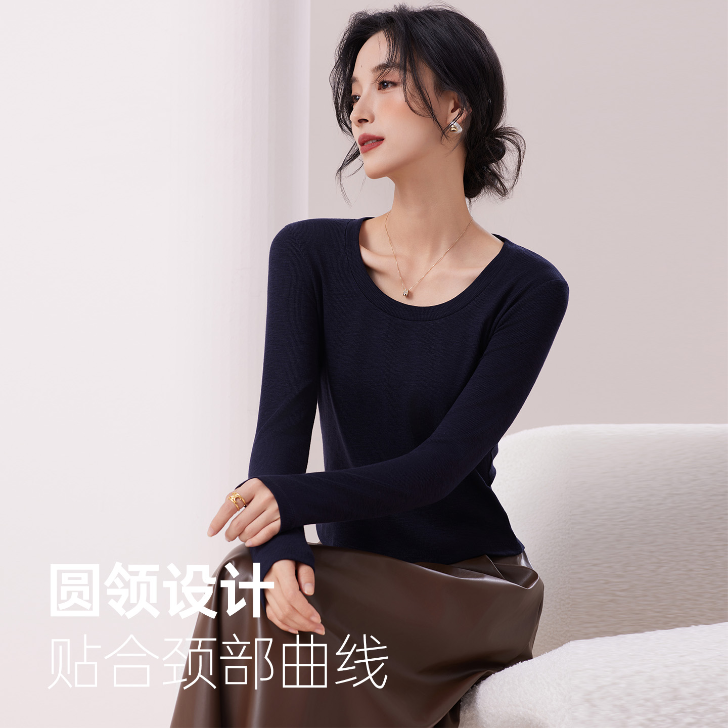 女长袖 高级感一线成衣圆领毛衣秋冬女内搭无缝修身 显瘦针织打底衫