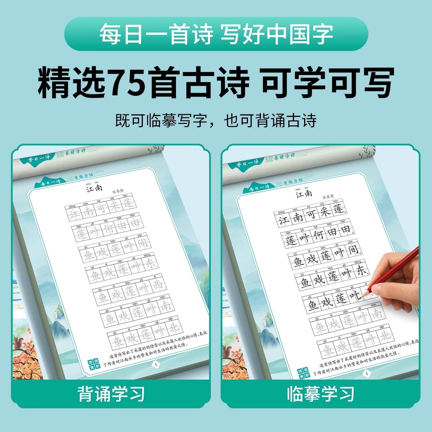 同步练字本积累唐诗宋词硬笔书法临摹描红本 80首一二三四五六年级语文人教注音版 6年级古诗词练字帖小学生专用每日一练楷书75