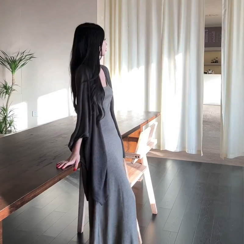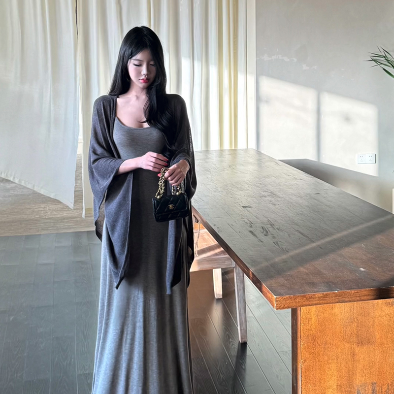 百搭斗篷 时尚 深灰色披肩女2025年薄款 高级外搭慵懒风知性针织开衫