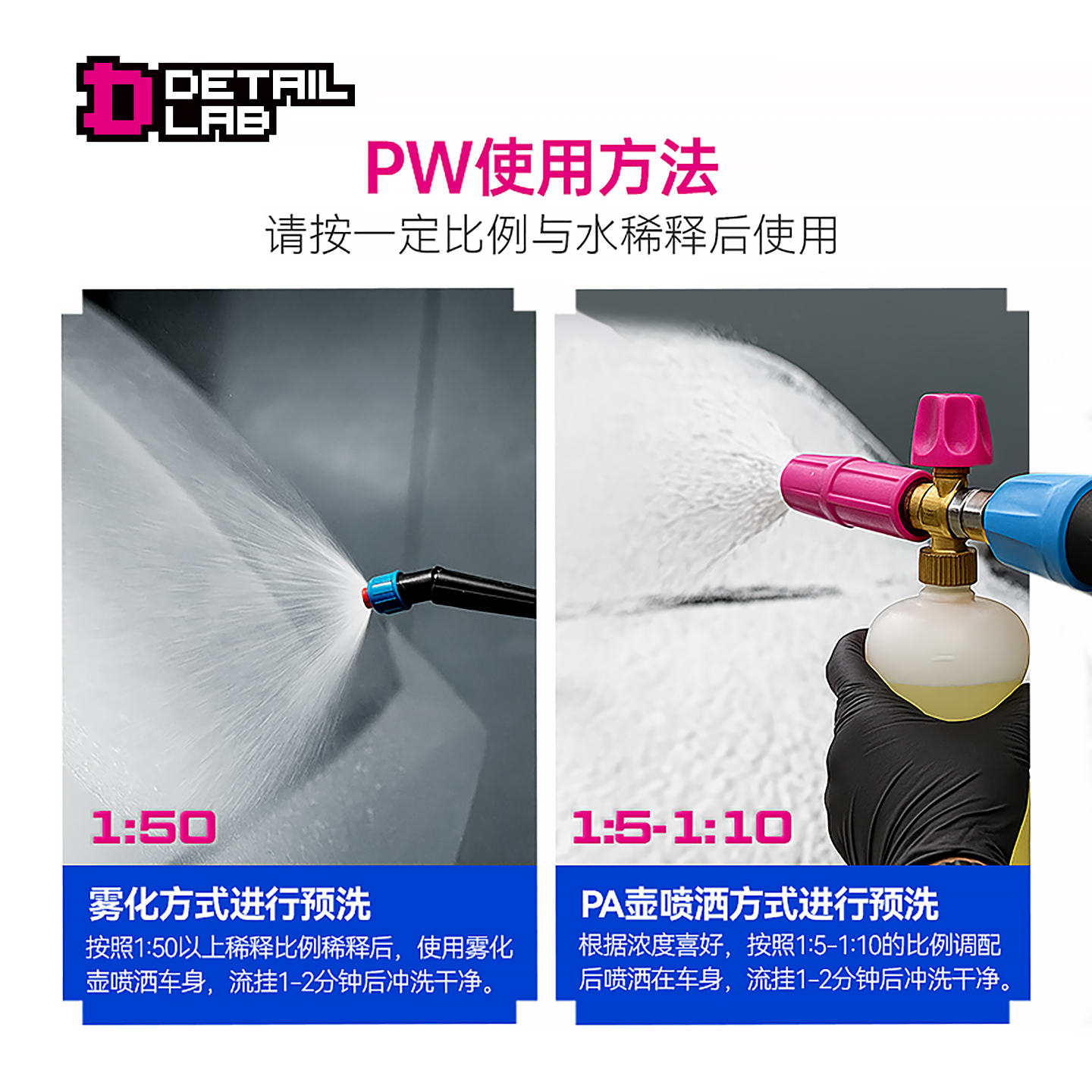 Detail Lab强效预洗液PW高泡沫洗车液水蜡PA去污清洁剂汽车用品