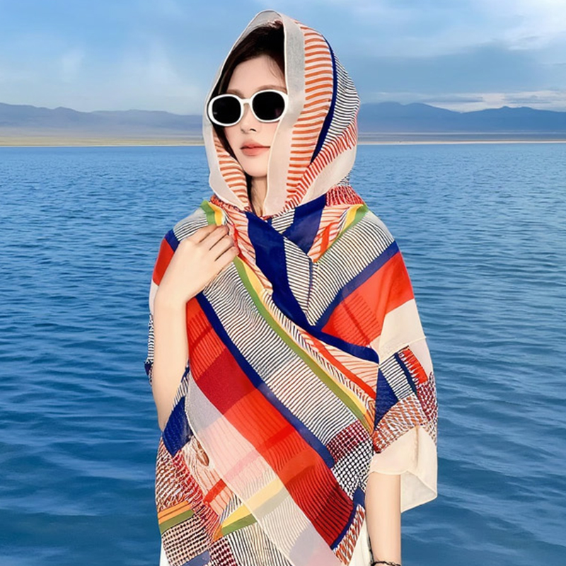 丝巾斗篷披风空调房开衫 2025新款 盘扣披肩女外搭旅游拍照网纱薄款