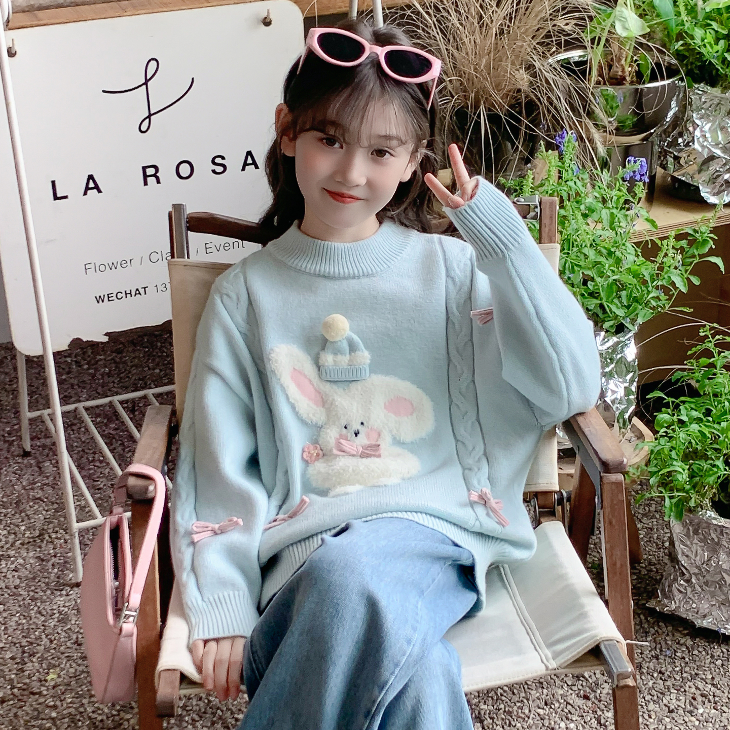 女孩秋冬款 儿童网红洋气卡通打底针织衫 上衣 2025新款 女童毛衣秋装
