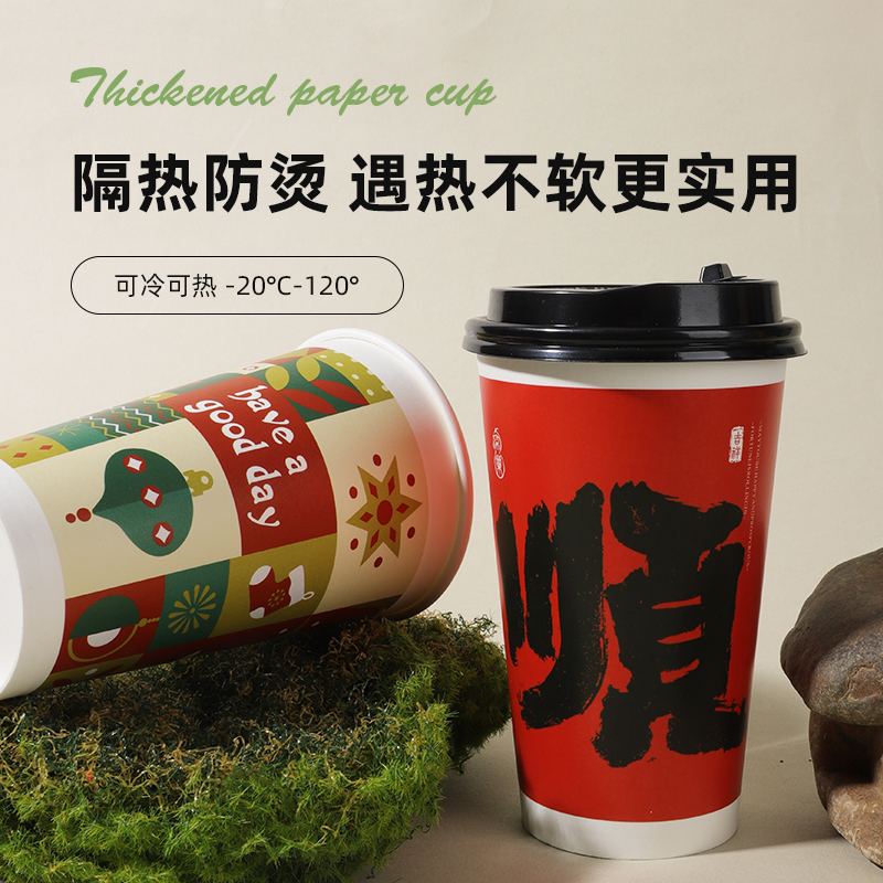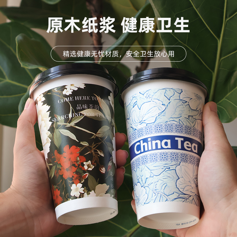 奶茶杯子一次性商用加厚奶茶店专用外卖打包新中式 国风冷热饮纸杯