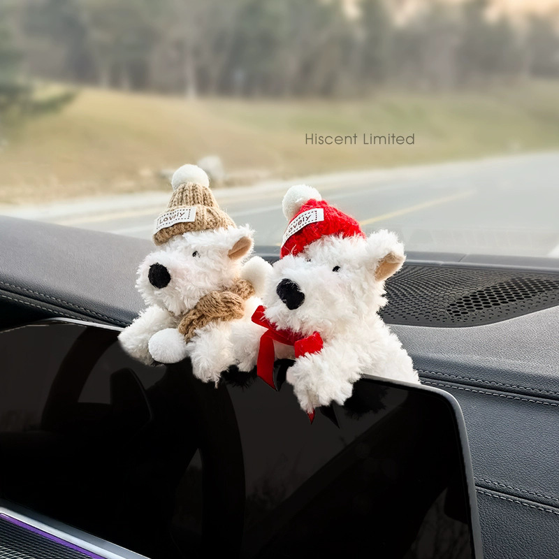 汽车中控屏幕趴趴摆件西高地车载可爱狗狗毛绒玩偶公仔车用装 饰品