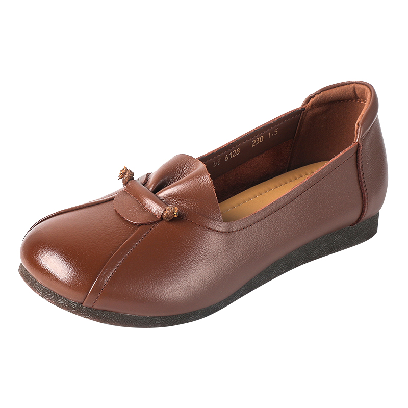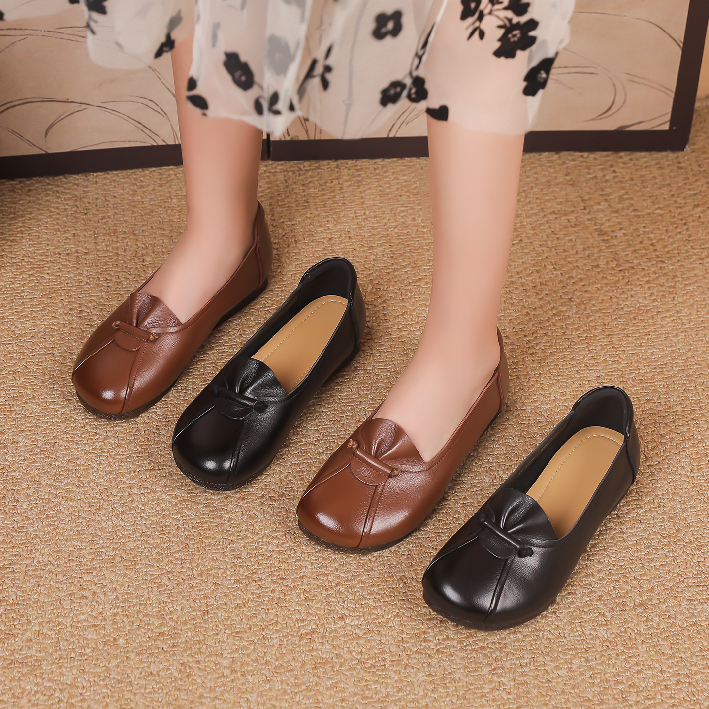 女鞋 真皮平底单鞋 大码 中老年舒适超软防滑豆豆鞋 女牛筋软底妈妈鞋