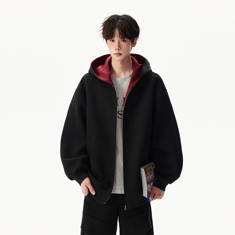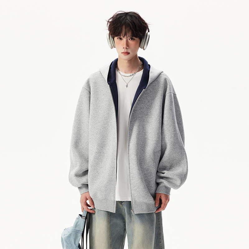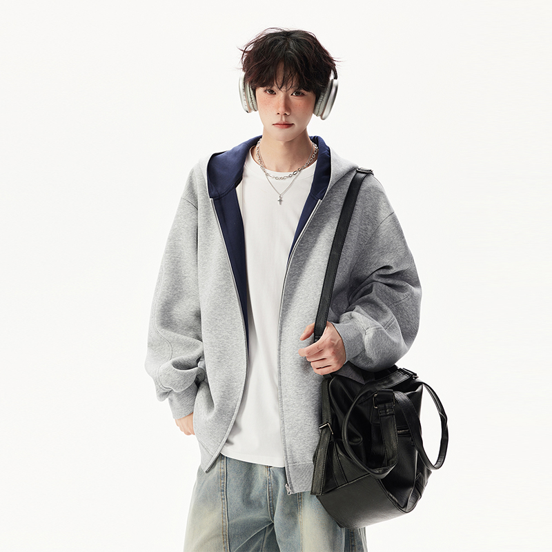 boxy廓形外套 宽松百搭休闲情侣帽衫 美式 重磅撞色连帽卫衣男女秋季