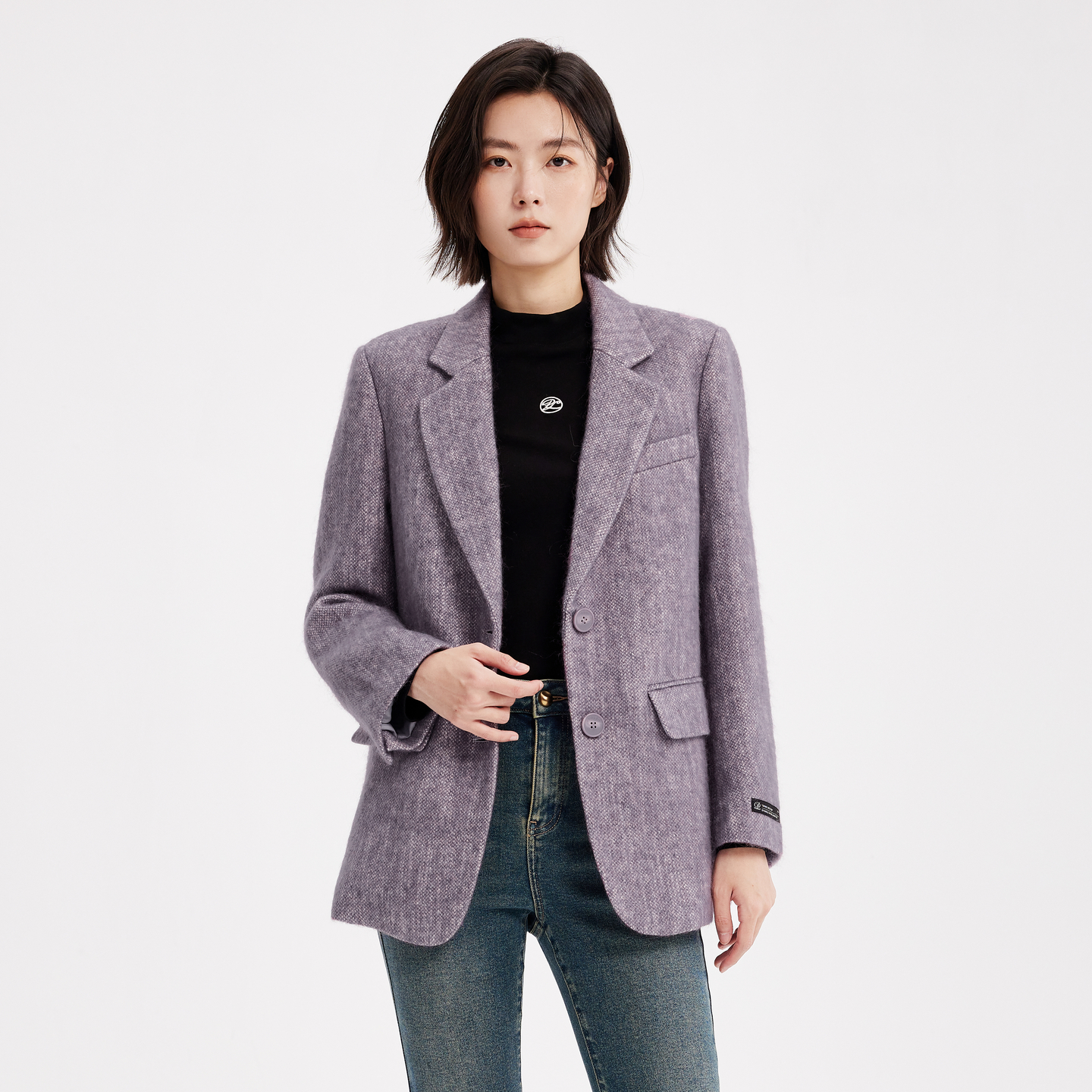 紫色小香风西装 绵羊毛小个子高级感气质上衣 外套女2025年秋冬新款